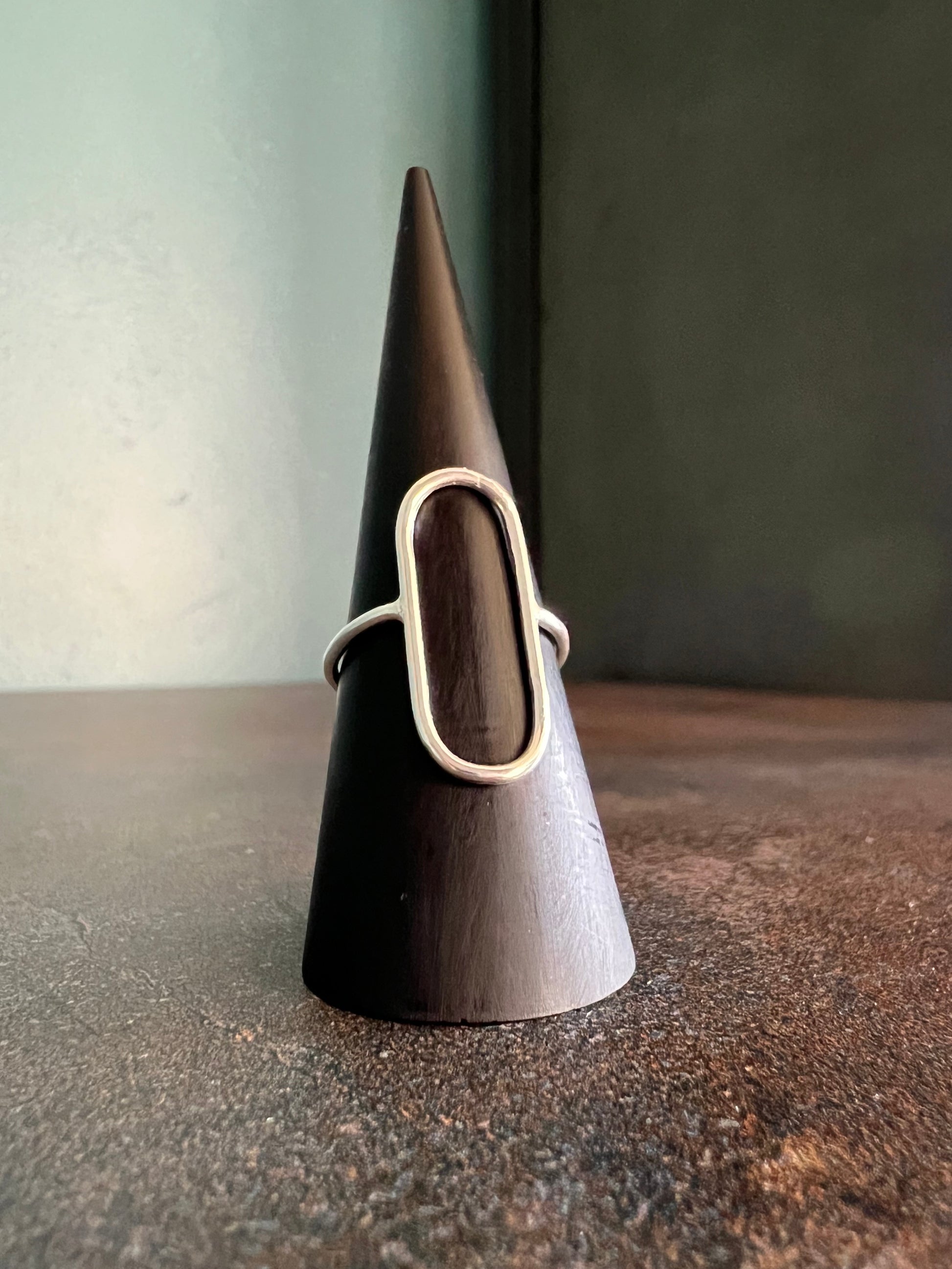 Similar to the big sister saddle ring, this oval wire frame ring is a lighter, more understated look. So comfortable you won't feel you're wearing it.